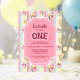Rosa Blütenstreifen 1. Geburtstag Party Einladung