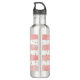 Wasserflasche mit elegantem Muster. Mit rosafarbenen Streifen und Imitaten goldenen Konfetti-Glitzer verstreut herum. Ein weißes Quadrat mit einem goldenen Imitat-Rahmen, der oben mit dem personalisierten Text überlagert ist.