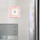 Danke Magnet mit einem eleganten Muster. Mit rosafarbenen Streifen und Imitaten goldenen Konfetti-Glitzer verstreut herum. Ein weißes Quadrat mit einem goldenen Imitat-Rahmen, der oben mit dem personalisierten Text überlagert ist.