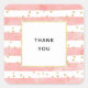 Vielen Dank an die Aufkleber mit einem eleganten Muster. Mit rosafarbenen Streifen und Imitaten goldenen Konfetti-Glitzer verstreut herum. Ein weißes Quadrat mit einem goldenen Imitat-Rahmen, der oben mit dem personalisierten Text überlagert ist.