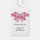 Eine wunderschöne Abbildung mit einem gedruckten, großen Imitat-Rosa-Satin-Bogen mit einem runden Diamant-Inlay-Set vor einem weißen Hintergrund, der in eine beliebige Farbe geändert werden kann. Es gibt Vorlagen in einem fett schwarzen Schriftart für Ihre personalisierte Formulierung auf der Vorder- und Rückseite. Fügen Sie den Namen der Brautpaare und Ihre eigene einzigartige Nachricht zu den Gästen auf beiden Seiten hinzu. Ideal für eine Hochzeit, Jubiläum, besondere Feier und geschäftliche Veranstaltung.