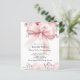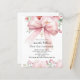 Weiß, mit einem rosa großen Bogen und goldfarbenen Kreuz und rosa Blume dekoriert. Personalisieren und fügen Sie einen Namen und Details. 1 Blatt = 1 Einladung mit Druckkante bis Kante.