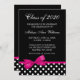 Rosa Bogen-Polka-Punkt-Abschluss-Mitteilungs-Einladungen. Ein stilvolles Schwarzweiss-Tupfenmuster mit einer Pinkbandillustration. Vervollkommnen Sie für einen Highschool Abschluss, Uni-Abschluss- oder Abschluss-Party! Entwürfe sind Druckillustrationen/Grafiken - NICHT TATSÄCHLICHES BAND.
