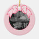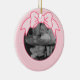 Ein rosa Bogen schmückt einen einfacher Kreis geformten Rahmen, der Bogen und Rahmen werden mit kleinen Tupfen umfaßt.