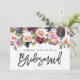 Pink, Bordeaux und Feigenbläsertafel verlangen eine Karte. Wasserfarbene Blumen, Blattwerk und handgemalte Früchte. Teil einer Hochzeitssuite.