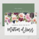 Rosa, Bordeaux und Feigenblumenmatron mit Ehrenkarte. Wasserfarbene Blumen, Blattwerk und handgemalte Früchte. Teil einer Hochzeitssuite.