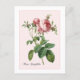 Eine kunstvolle Postkarte, Rosa Centifolia - Eine botanische Illustration rosa Rosen von Pierre-Joseph Redoute (c. 1817-1824).