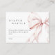 Babydusche-Windel-Verpackungskarte mit rosa Bogen und rosa Hintergrund.