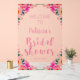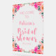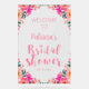 Ein hübsches Willkommensschild mit Blumenmotiv für ein Brautparty. Es kann leicht mit Ihren Daten personalisiert werden. Wenn Sie Fragen zum Kunstwerk haben oder eine Anpassung benötigen, kontaktieren Sie mich bitte per Chat, bevor Sie einen Einkauf tätigen. Bitte wenden Sie sich direkt an den Zazzle Kundenservice, um Hilfe bei Bestellungen, Versand, Produktinformationen usw. zu erhalten.