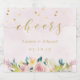 Maßgeschneiderte Hochzeitsflaschen-Etiketten mit rosafarbenem Aquarellblumenmuster und goldenem Kalligraphiedesign.