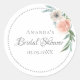 Ein trendiger, einfacher und eleganter Aufkleber für ein Brautparty. Die Einrichtung besteht aus einem schlichten, wasserfarbenen Kranz aus Rose, die rosa und grün sind. Eleganter weißer Hintergrund. Vorlagen für den Namen und das Datum der Braut. Mit dem Text: Brautparty geschrieben mit einem handgeschriebenen Stil Skript. Graue Buchstaben.