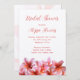 Plumeria Blume Braudusche Einladungen. Feiern Sie die zukünftige Braut mit Keepake-Einladungen. Große, wunderschöne Frangipani-Blume machen einen weiten Rahmen entlang der weißen Karten. Der Titel des Party sowie ihr Name werden in rosa Schrift gedruckt, während der Rest des Textes schwarz ist. Wählen Sie eine Papieraktualisierung aus und ändern Sie die Papierform nach Ihren Vorstellungen.