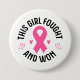 Dieses Button-Button wird in einem rosa Farbbandüberlebensdruck angezeigt. Passen Sie dieses Objekt an oder kaufen Sie, wie es ist. Geschütztes Bild zur Sensibilisierung für Brustkrebs