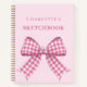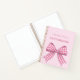 Eine Mädchenschrift für die Schule. Ein weicher, rosafarbener Hintergrund, der mit einem großen, karierten Bogen geschmückt ist. Personalisieren und einen Namen hinzufügen.