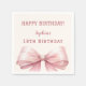 Creme, beige Hintergrundfarbe. Die Einrichtung ist mit einem großen rosa Bogen geschmückt. Personalisieren Sie den Namen und das Datum und fügen Sie diese hinzu. Text: Herzlichen Glückwunsch zum Geburtstag!