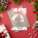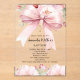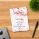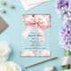 Der helle, durchsichtige Hintergrund ist mit einem rosa großen Bogen und goldfarbenen Kreuz und rosa Blume geschmückt. Personalisieren und fügen Sie einen Namen und Details.