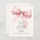 Das weiche beige, cremefarbene Dekor ist mit einem rosa großen Bogen und einem goldenen Kreuz geschmückt. Personalisieren Sie den Namen und Details und fügen Sie diese hinzu. 1 Blatt = 1 Einladung mit Druckkante bis Kante.