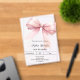 Der helle, transparente Hintergrund ist mit einem rosa großen Bogen verziert. Personalisieren und fügen Sie einen Namen und Party-Details hinzu.