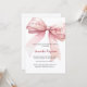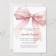 Ein eleganter weißer Hintergrund mit einem großen rosa Bug. Personalisieren und fügen Sie einen Namen und Party-Details hinzu. Text auf dem Bogen: Es ist ein Mädchen!
