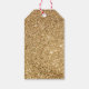 Niedliche Prinzessin Thema Geburtstagsparty Gunst Tag mit einem rosa Schloss mit den Imitaten Gold Glitzer Top. Im Hintergrund befindet sich ein pastellfarbener Regenbogen. Dieses farbenfrohe Etikett ist großartig für das Party eines Mädchens.