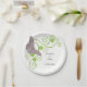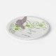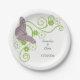 Für Hochzeitsgäste gibt es eine einzigartige Papiertafel mit einem Set von Tellern aus dem Pink Butterfly-Brautparty. Das Design der Papierplatte besteht aus einem rosa Schmetterling, der sich auf einem leuchtend grünen Schnörkel und Blüten ruht. Personalisieren Sie mit dem Bräutigam und den Namen der Braut zusammen mit dem Hochzeitstag. Mit diesem Design sind auch weitere Hochzeitswaren erhältlich.