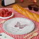 Elegante und einfache Hochzeitspapier-Teller mit einem rosa Schmetterling vor grauem Grunge-Hintergrund. Dieses Design ist eine einzigartige Wahl für eine moderne Hochzeit. Einfach an Ihre Hochzeitsdetails anpassen. Klicken Sie auf "Anpassen", um weitere Personalisierungsoptionen zu erhalten.