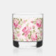 Dieses süße Whiskey-Glas hat einen rosa Kohlkopf-Rose Hintergrund auf beiden Seiten.