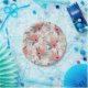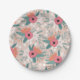 Wildblume Papier Party Teller mit rosa Kohl Rose und Orangenpfeifen.