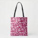 Diese gürtelige Camouflage-Tasche weist ein Tarnmuster in dunkelrosa und blassrosa Farbtönen auf.