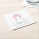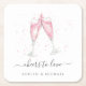 Festliche und elegante Untersetzer für Ihre Verlobungsfeier oder Hochzeitsfeier mit einer Champagnerbrille in Aquarell, gefüllt mit rosa Blase. Personalisieren Sie sich mit zwei Textzeilen, darunter mit "Beifall zur Liebe" und den Namen des Paares.