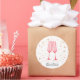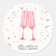 Zwei rosa Champagnergläser auf einem Hintergrund aus rosa und goldfarbenen Konfetti, diese runden Aufkleber sind perfekt für ein Brautparty Gastgeschenk und mehr. PASSENDE Artikel in unserer Sammlung.