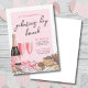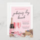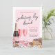 Einfache Rosa Champagner Frühstück Galentine's Day Brunch Einladung. Feiern Sie mit diesem charmanten und spielerischen Design Ihren Galentinstag-Brunch in stilvollem Ambiente und verbringen Sie einen angenehmen Tag mit Ihren nahen Freunden. Die Vorderseite weist einen sauberen, weißen Hintergrund mit einem rot-rosa Rechteck auf, wodurch ein weicher Rahmen entsteht. Im unteren links Teil werden zwei rosa Champagnergläser und eine rosa und schwarze Flasche mit Bogen und Konfetti mit einer Auswahl an Leckereien für das Frühstück, darunter Pfannkuchen, Croissant, Zimtwürfel und Kekse auf einem grauen und weißen Handtuch, kombiniert. Die dunkelgrauen und rosa Schriftart verleihen der Touch eine moderne und einladende Atmosphäre. Diese Einladung eignet sich perfekt für eine festliche Ansammlung am Morgen, ob es sich um ein lässiges Frühstück oder einen formelleren Brunch handelt. Sie können die Farben, den Text und das Design vollständig an Ihre Veranstaltung anpassen. Es ist als gedruckte Karte oder digitale Datei erhältlich und ist der ideale Weg, um Ihre Galentiner Feier zu starten.