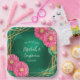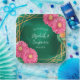 Eine zarte Aquarellbild mit einem geometrischen Rahmen-Set in goldenem Rahmen vor smaragdgrünem Hintergrund. Der Rahmen ist mit lebhaften, heiß rosa Chrysanthemen geschmückt, die an den äußeren Rändern angebracht sind. Das gesamte Design hat eine weiche Aquarellstruktur, die Eleganz mit einer natürlichen Touch mit Blumen verbindet.