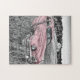 Ein atemberaubend rosa Vintages, klassisches Auto vor einem schwarz-weißen Hintergrund macht ein einzigartiges Design.