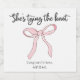 Fügen Sie Ihrem Brautparty eine süße Touch mit unseren "She's Tying the Knot" Coquette Pink Bow Hochzeitsweinetiketten hinzu! Diese Aufkleber, die perfekt auf unsere koordinierenden Einladungen abgestimmt sind, verfügen über einen zarten rosa Bogen und schaffen eine feminine und skurrile Atmosphäre. Sie sind das perfekte Detail, um Ihr Duschthema gemeinsam Krawatten.
