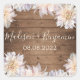 Rosa Dahlia Blume Rustikales Holz Hochzeitsplatz Quadratischer Aufkleber