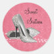 Hübsche Schuhkleber in Rosa und Glitzer. Sie können Text hinzufügen, um diesen niedlichen rosa Damast High Heel Schuhaufkleber zu personalisieren.