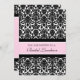Brautmittagesseneinladungen in elegantem hellrosa, klassisches Blumendamastschwarzweiss-muster, elegant und weiblich, kundengerecht mit Ihren Duschendetails. Auch verfügbar danke herein Karten und Einladungen für das Brautparty.