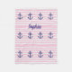 Rosa gestrichene Decke mit blauen Ankern. Aus weicher Fleece. Monogram mit deinem Namen. Niedlich und gemütlich.