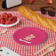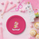 Persomalisiertes Design mit Illustration niedlich lächelnder rosa Drache, Fantasie / Märchendesign für Kinder auf rosa Hintergrund, mit anpassbarer Textvorlage für Ihren Namen oder Ihre Nachricht