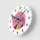 Uhr mit Abbildung eines niedlichen kleinen, rosa fliegenden Drachen, in rosa Kreis, niedliche Fantasie / Märchendesign für Kinder von Maxi Harmony