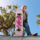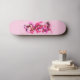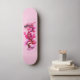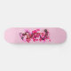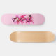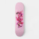 ein dekoratives Design eines rosa farbenen Drachen, einer Eidechse oder einer Schlange mit rosa Blüten, die von einem Baumzweig auf einem leicht rosa Skateboard wachsen.