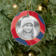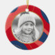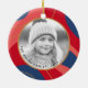 Weihnachtsschmuck mit individuellem Foto und roter, rosa und dunkelblauer Grenze. Anpassbare Begrüßung oder Text.