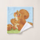 Dieses Waschtuch hat ein niedliches Eichhörnchen, das unter einem blauen Himmel im Grünen sitzt und rosige Wangen mit seinem Nuss und Eicheln hält.