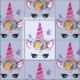 Stoff mit wiederholendem Muster - mit einem trendigen rosa Einhorn entworfen. Mit einem extravaganten Blumenkopfteil verziert. Whimsikale Schmetterlinge fliegen herum.