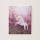 Pastellrosa Einhorn im Hintergrund von rosa blühenden Bäumen und rosa Blume Puzzle Puzzle