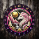 Rosa Einhorn steht im Mondlicht stolz auf Dartscheibe