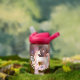 Eine niedliche, handgezeichnet Trinkflasche mit Einhörnern in einem Blumengarten mit Schmetterlingen und blühenden Blume.