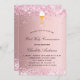 Hintergrund mit rosafarbenem Farbverlauf. Dekoriert mit rosa Konfetti, Chalice und einem Host Personalize und fügen Sie einen Namen und Details. Der Name wird mit einem handgeschriebenen Stilskript geschrieben