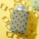 Rosa Eisbecher mit Schokolade und Kirsche auf grünem Hintergrund.